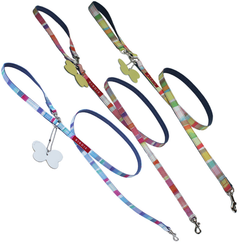 BIRDIEオリジナル汚れを防ぐ加工を布地に施したボーダー柄と蝶々のチャームが可愛くて誰からも愛される上質なリード